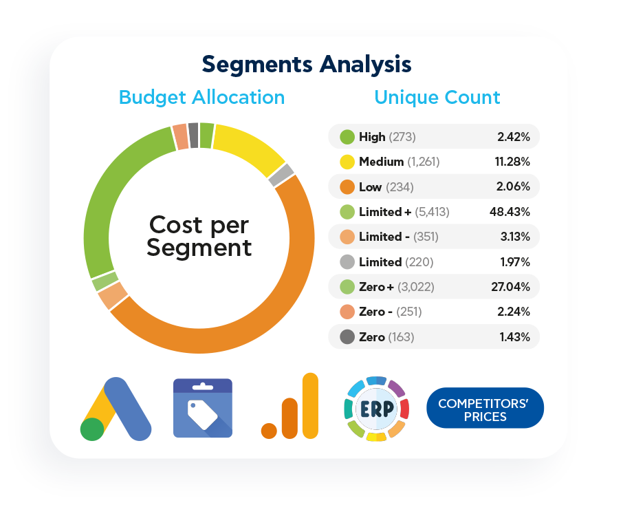 Segmentation based on a combination of signals from Google Analytics, Google Ads, and Google merchant center for robust results